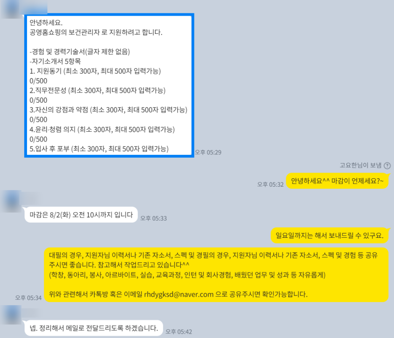 저는 지원자 한 분 한 분의 스토리에 귀 기울여, 진정성 있는 자기소개서를 완성할 수 있도록 돕고 있습니다. 자소서 첨삭, 대필, 면접 컨설팅 등 다양한 서비스를 제공하고 있으니, 언제든지 편하게 문의해주세요!