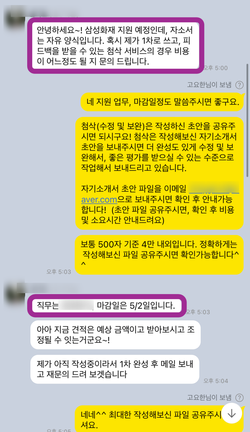 >> 4단계: 자소서 첨삭 및 대필 진행