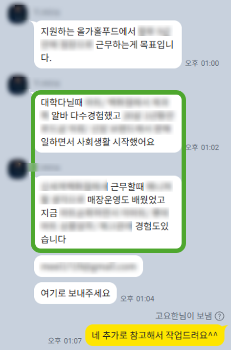올가홀푸드 경력직 자소서 대필로 합격률 200 상승!