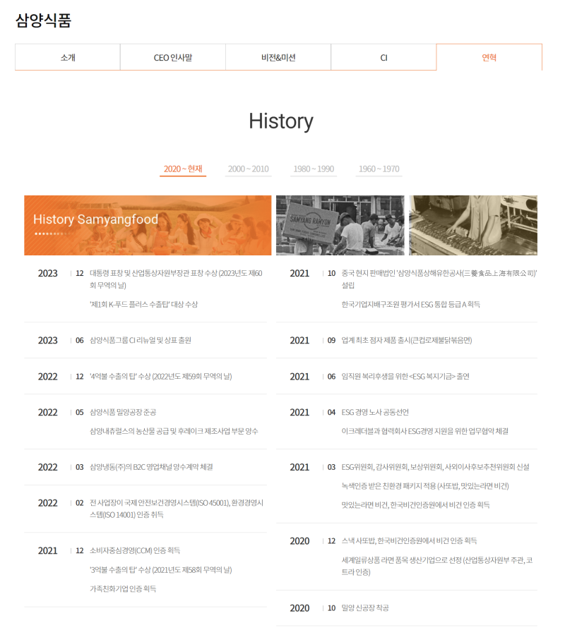 삼양식품은 대한민국 대표 식품 기업 중 하나로, ‘불닭볶음면’을 필두로 전 세계인의 입맛을 사로잡고 있습니다. 1961년 설립 이후, ‘국민 식품’ 라면을 통해 한국 식문화 발전에 기여해왔으며, 끊임없는 연구 개발을 통해 다양한 신제품을 출시하고 있습니다. 최근에는 해외 시장 공략에 박차를 가하며 글로벌 식품 기업으로 도약하고 있습니다.