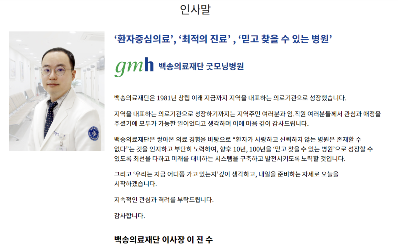 • 비전: 최상의 진료, 최고의 서비스, 감동을 주는 병원