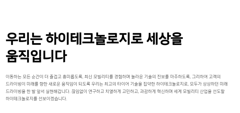 • 주요 사업: 타이어 제조 및 판매, 런플랫 타이어, 전기차 타이어 등