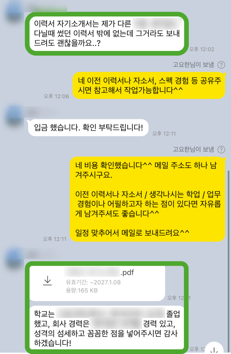 >> 온라인(화상/전화) 또는 오프라인으로 1:1 집중 첨삭/대필을 진행합니다. 꼼꼼한 피드백과 함께 완성도를 높여드립니다. ✍️