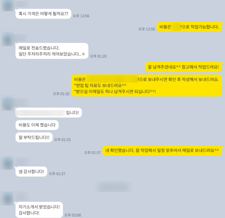 중소기업/중견기업 자기소개서 첨삭 대행 합격 후기(합격자 다수)
