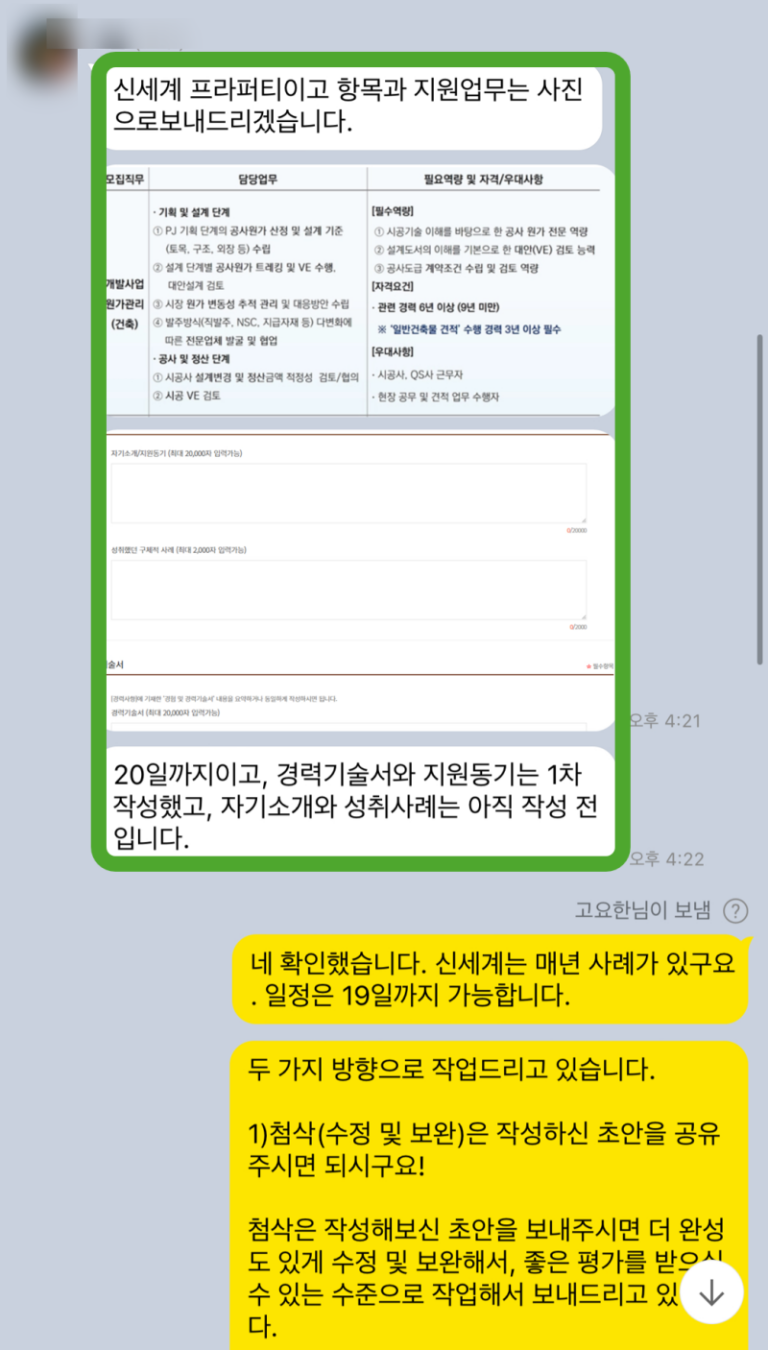 자소서 대필 첨삭, 대전광역시 시설관리공단에 지원하시는 분 자소서 대필 진행했습니다.