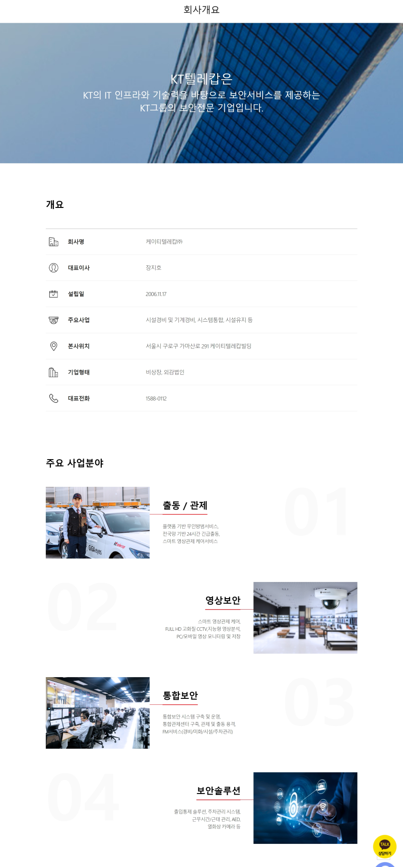 KT텔레캅은 특히 AI 기반 영상 분석 기술과 클라우드 기반 보안 플랫폼을 통해 경쟁력을 강화하고 있습니다. 이러한 기술력을 바탕으로 스마트시티, 스마트빌딩, 산업 현장 등 다양한 분야에서 맞춤형 보안 솔루션을 제공하며 시장을 확대해 나가고 있습니다. 고객의 안전과 편의를 최우선으로 생각하며, 지속적인 기술 혁신과 서비스 개선을 통해 보안 산업을 선도하는 기업이 바로 KT텔레캅입니다.